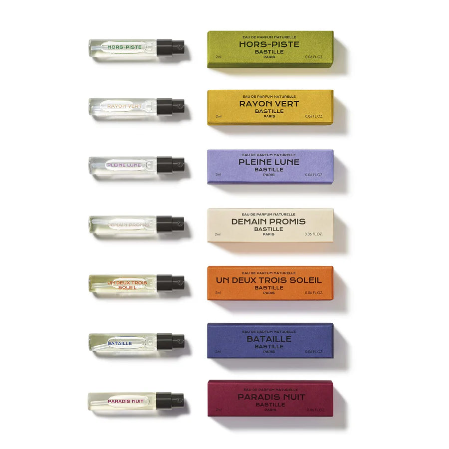 Provate 7 fragranze di nicchia a casa vostra in una straordinaria esperienza guidata. Vi spieghiamo come annusarle, applicarle e condividiamo i loro segreti di produzione. Ogni confezione contiene 7 campioni da 2 ml ciascuno, per un totale di 14 ml.