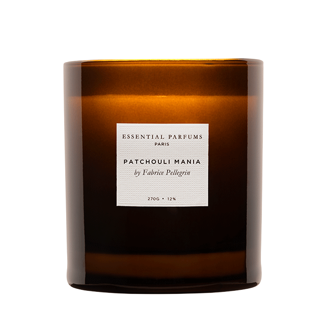 Candela profumata delicatamente profumata al Patchouli Mania di Fabrice Pellegrin. Altamente concentrata al 12%, cera minerale, stoppino in cotone.