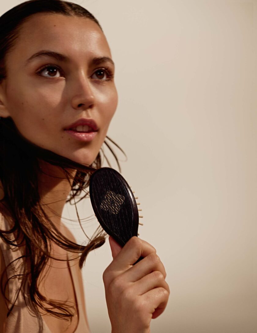 Spazzola districante e antistatica realizzata in legno di frassino sostenibile al 100% e cuscino in gomma naturale.